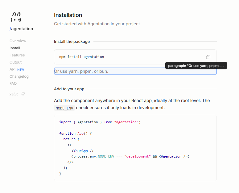 yarn add agentation