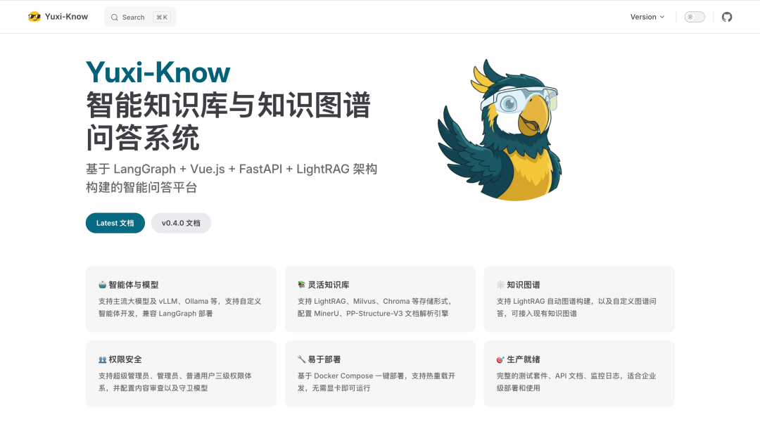| Yuxi-Know | 知识图谱问答 | 本地/自托管 | 企业、知识密集型团队 | RAG、知识图谱、向量化 |