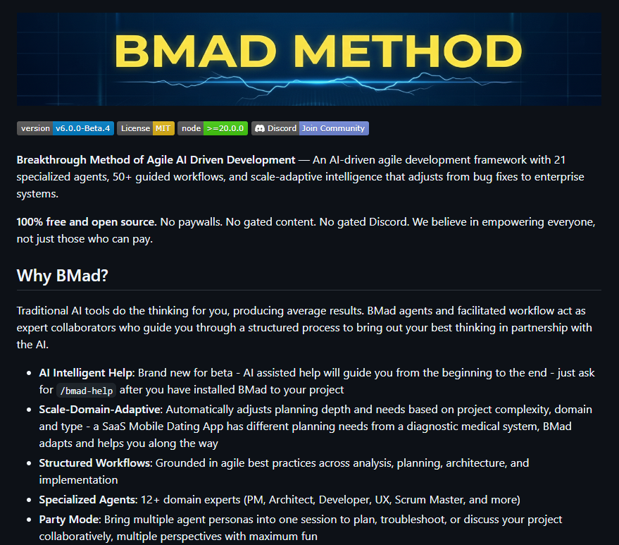 如果你正在探索如何在复杂项目中有效地集成 AI 能力,BMAD-METHOD 是一个具有参考价值的方案。它的开源免费特性进一步降低了尝试成本。