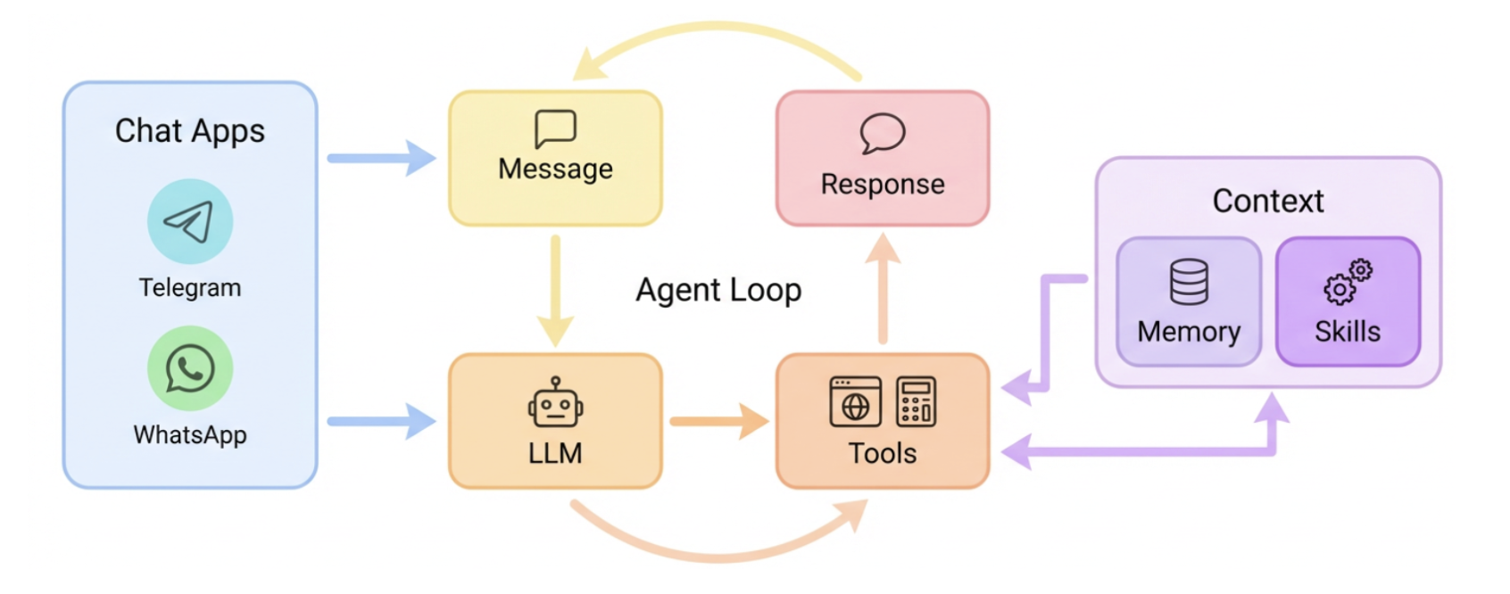 Nanobot可以理解为"最小可用AI Agent内核"——移除了学术装饰和工程冗余后,保留智能体必备的能力闭环。