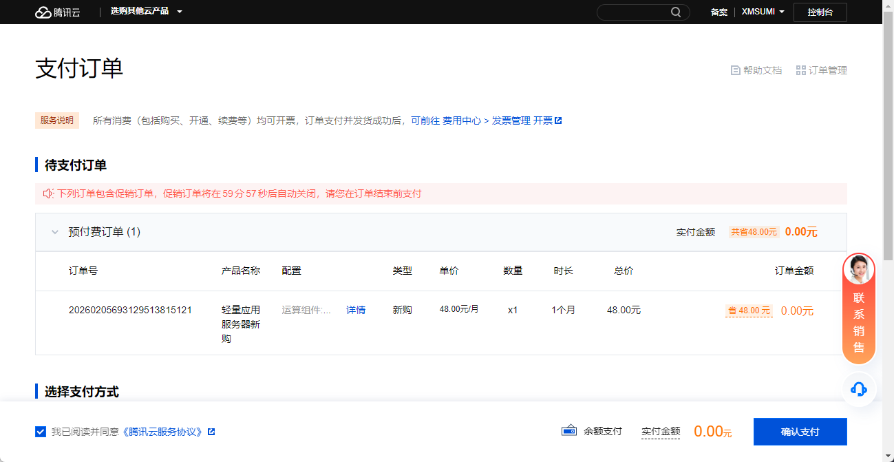 下单完成后,您将获得一台为期一个月的免费服务器