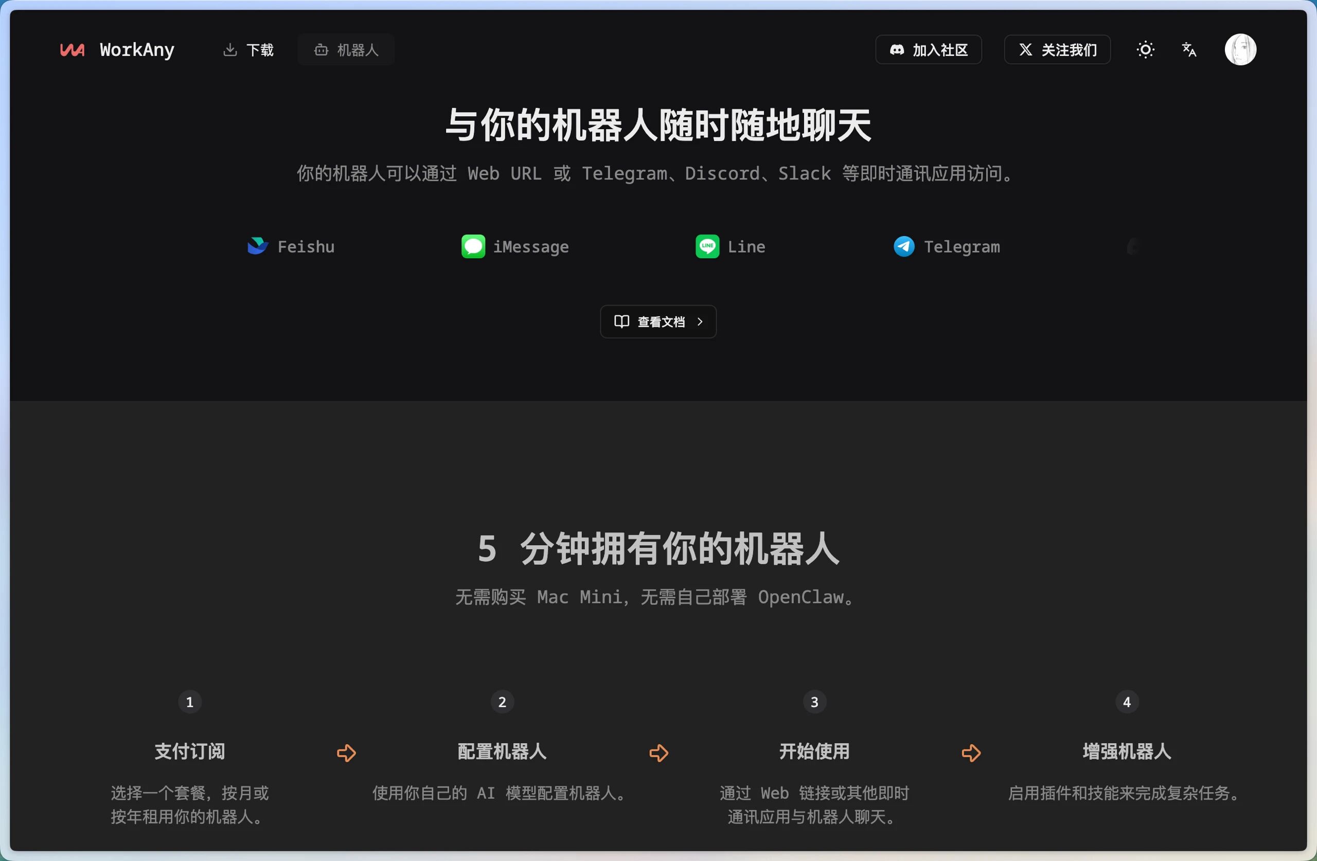 我关注的一个独立开发者idoubi 最近推出了 WorkAny Bot。