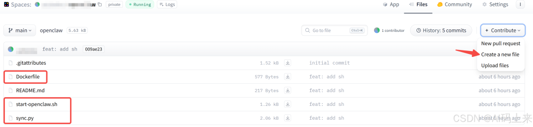 - 在 Space 的 Files 页面添加上述三个文件