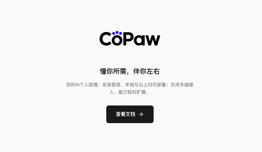CoPaw 既是「你的搭档小爪子」(co-paw),也寓意 Co Personal Agent Workstation(协同个人智能体工作台)。它可以部署在用户本地或云端环境中,通过多频道与用户进行对话,按照配置定时执行任务;通过智能体 Skills 进行无限可能的能力扩展。