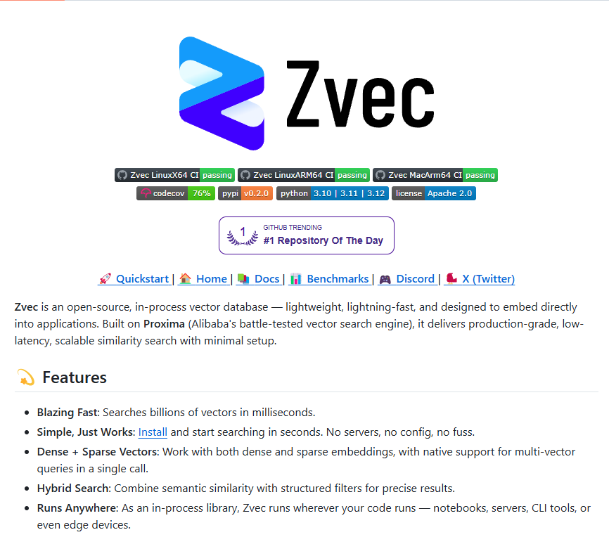 从定位来看,Zvec面向的核心场景是:当应用需要向量搜索能力,但又希望避免维护独立向量数据库服务的复杂性时。