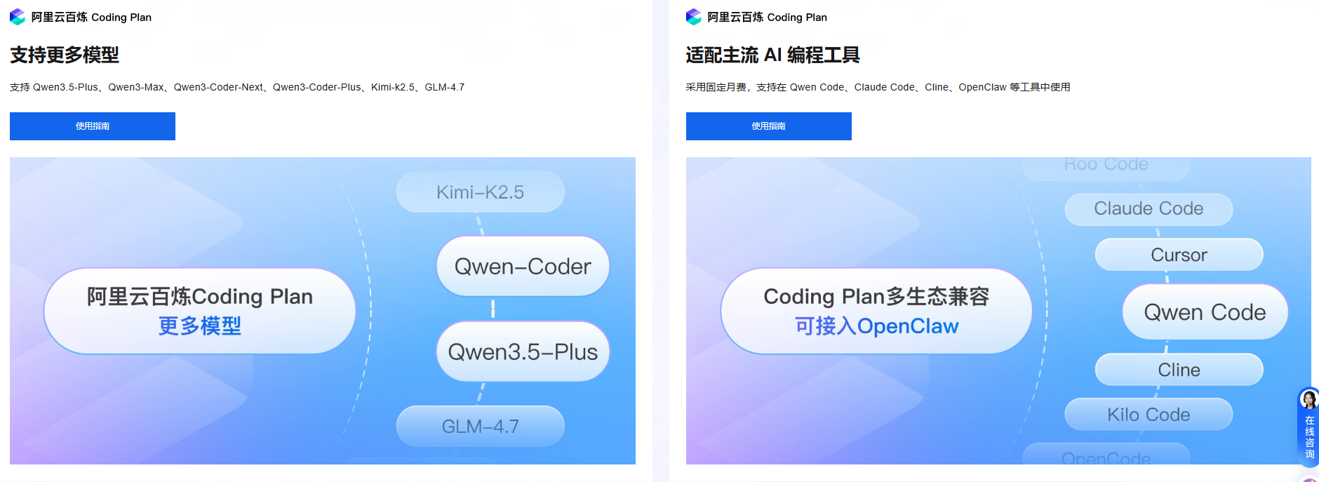 刚刚,阿里云Coding Plan订阅服务上新Qwen 3.5-Plus、GLM-5、Kimi-K2.5等编程模型,用户订阅后即可自由切换模型。