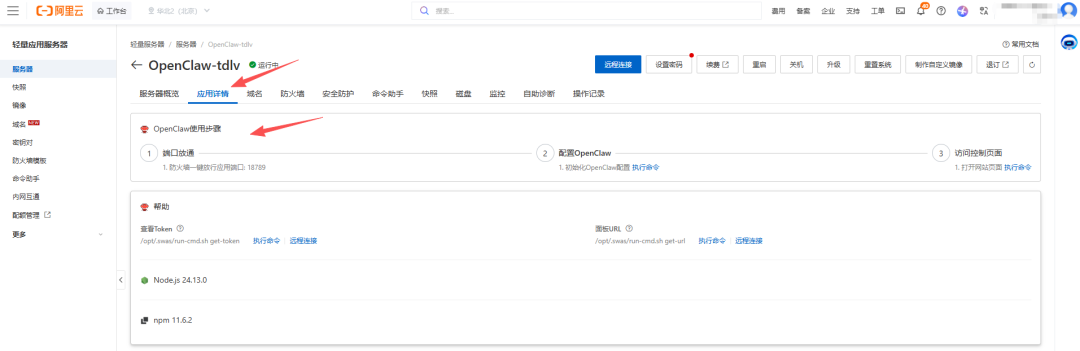 详细文档参考:https://help.aliyun.com/zh/simple-application-server/use-cases/quickly-deploy-and-use-openclaw