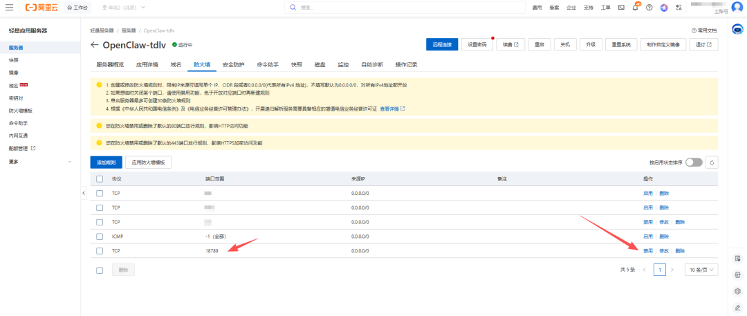 若暂时不使用,可随时在此处禁用端口,避免不必要的暴露