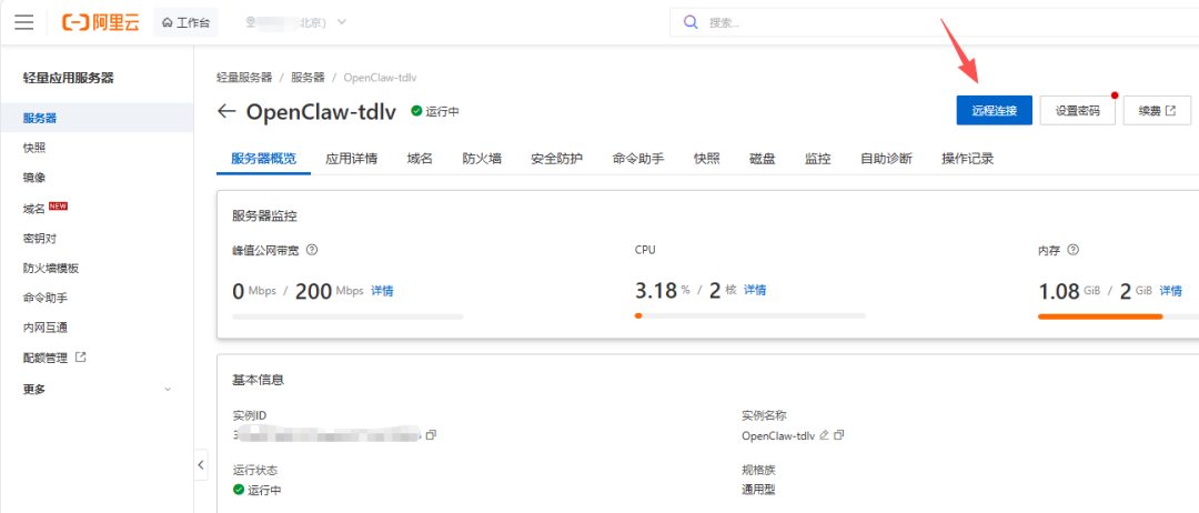 完成购买后,在控制台"实例列表"中找到新建的服务器实例