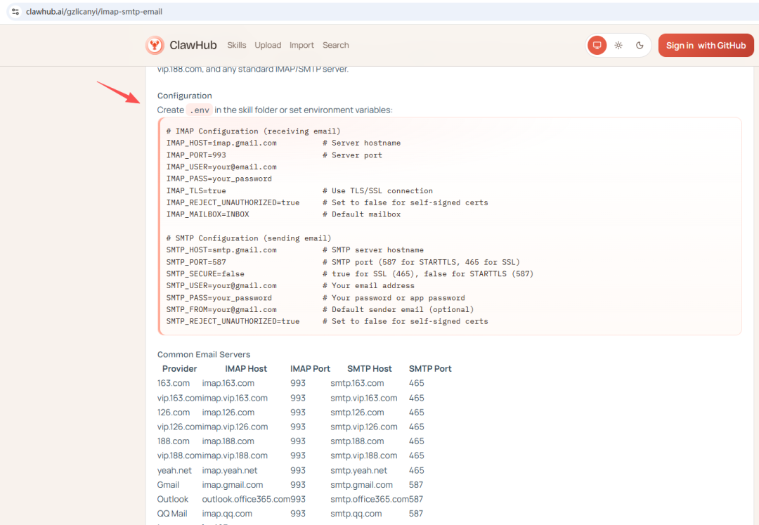 - 查看插件详情页面:https://clawhub.ai/gzlicanyi/imap-smtp-email