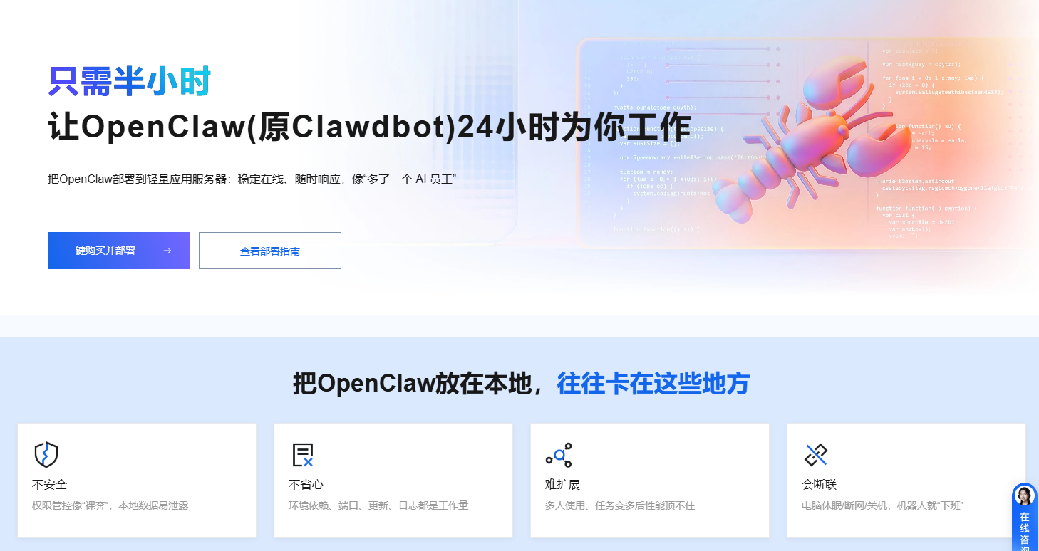 阿里云轻量应用服务器已内置OpenClaw镜像支持,省去了手动编译部署的复杂步骤。