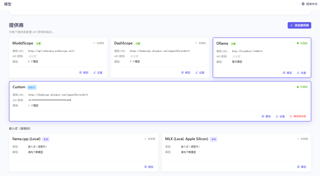 - 点击「添加模型」,输入模型名称(如:gpt-4、claude-3 等)