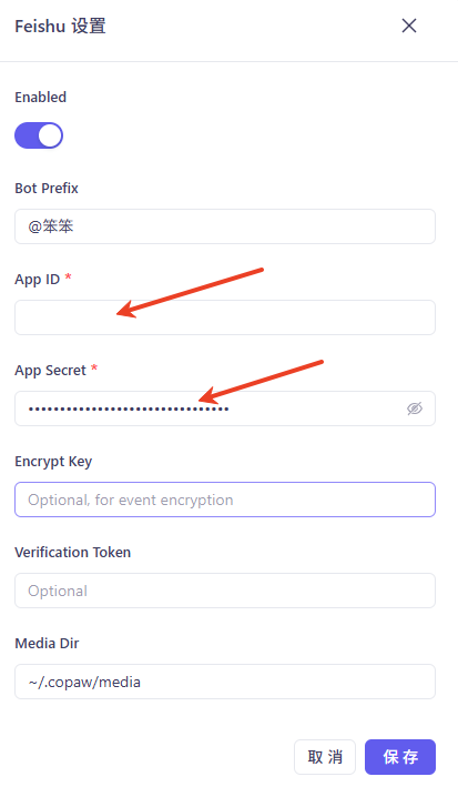 - 各项 API 凭证(如大模型 API Key、飞书 App Secret)的准确性