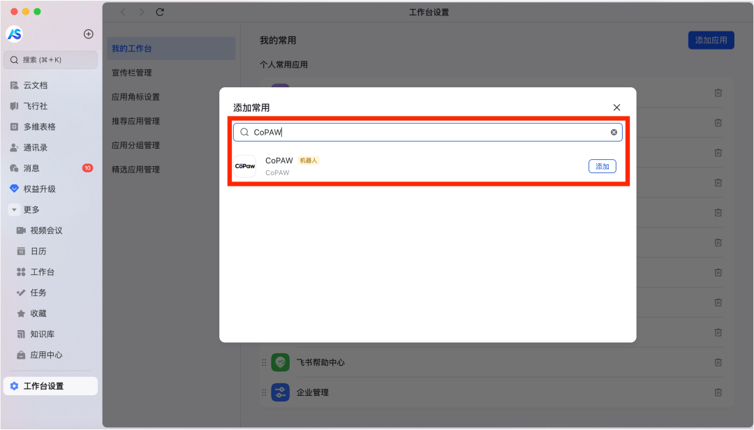 Copaw 支持多种通讯工具接入,包括飞书、钉钉、QQ 等。