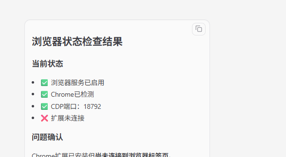 在首次使用时,系统会提示当前环境不支持浏览器自动化,这是因为缺少必要的扩展程序。
