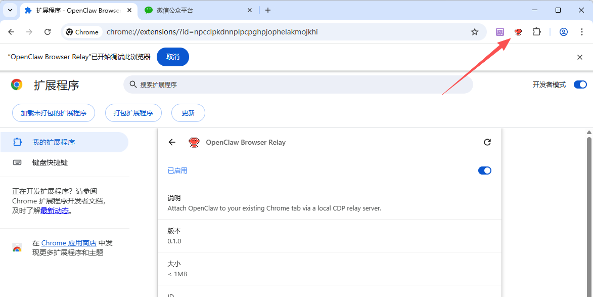 点击工具栏中的OpenClaw扩展图标