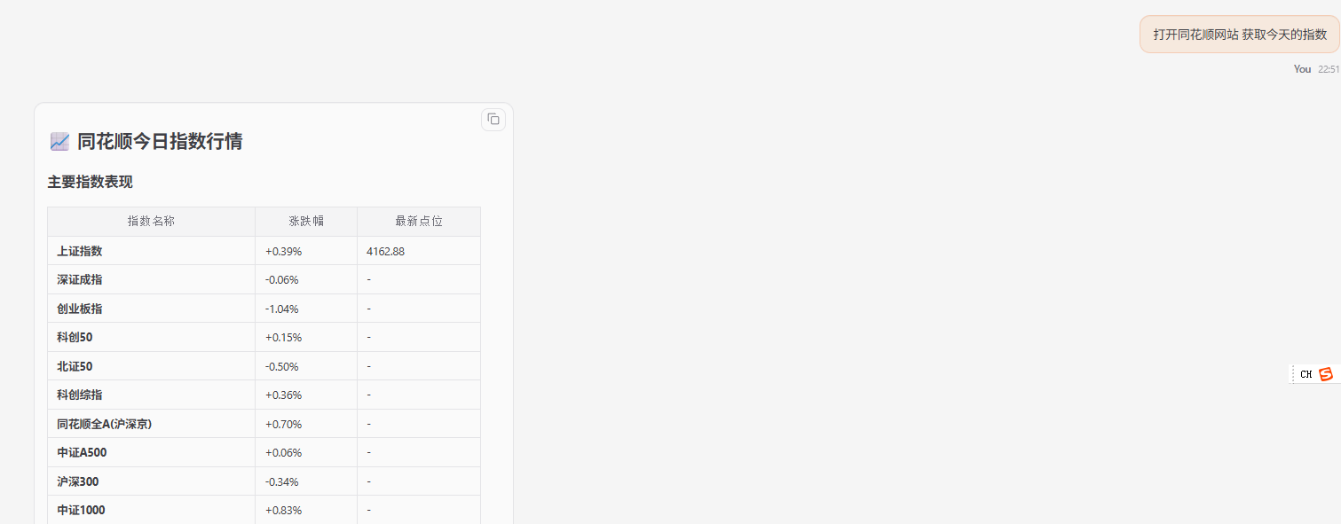 我进行了一个简单的自动化任务测试——让OpenClaw自动化操作浏览器获取股票数据。