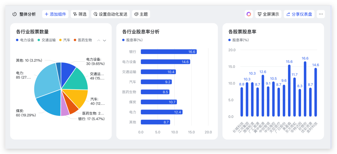 在飞书多维表格内利用AI引导功能创建仪表板,展示: