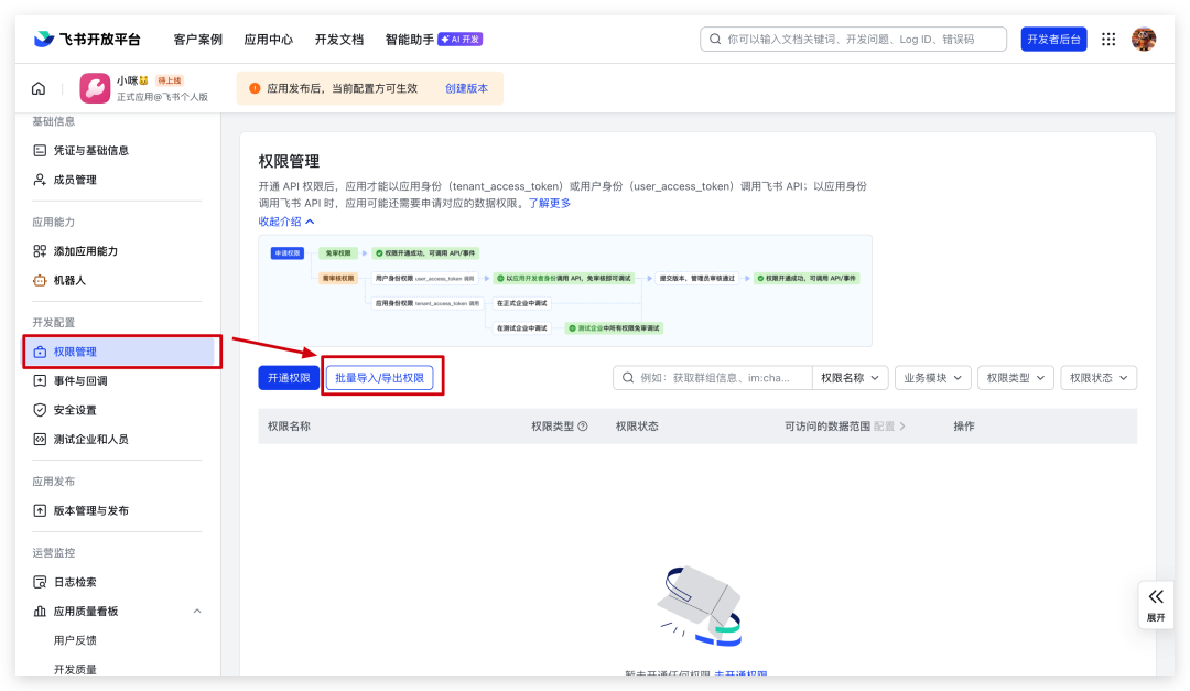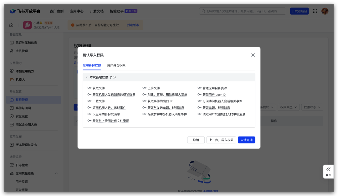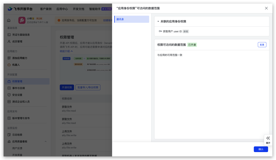 切换到飞书客户端,找到"开发者小助手",点击"打开应用"。