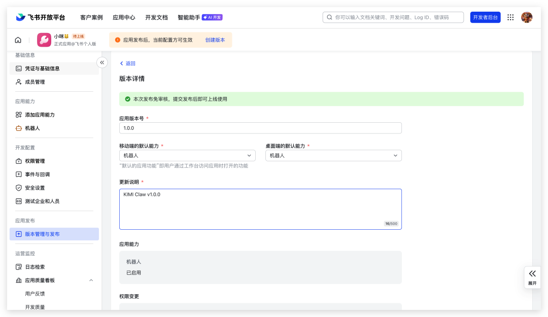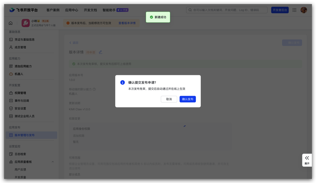 点击"创建版本",填入必要的应用信息(图标、描述等)。
