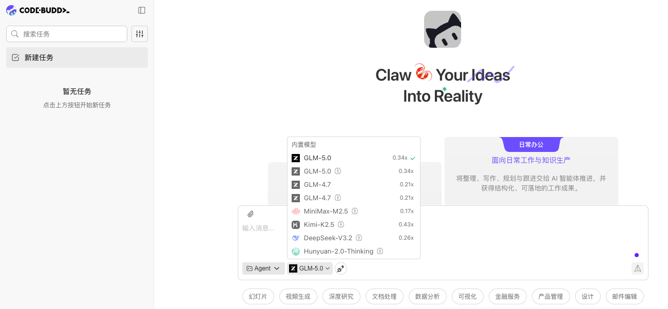 Web版地址:https://www.codebuddy.cn/agents