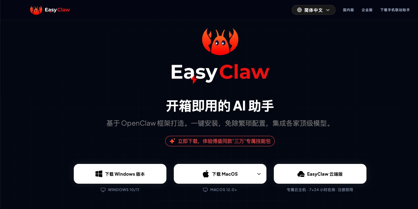 国内版本:https://easyclaw.cn