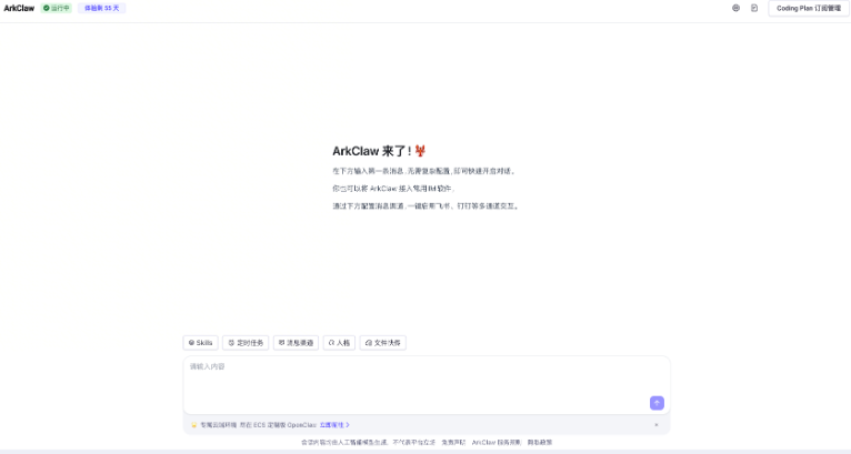 项目地址:https://www.volcengine.com/experience/ark?mode=claw