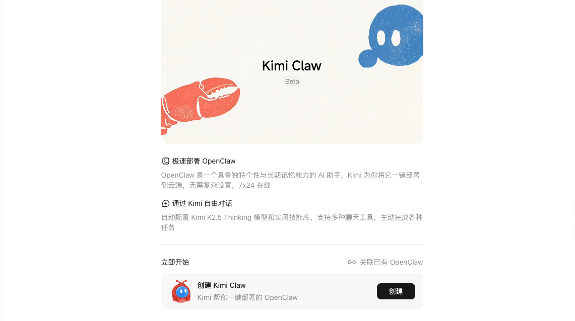- 一键云端部署模式,自动配置K2.5 Thinking模型和Kimi Search联网搜索,自带40G云盘存储