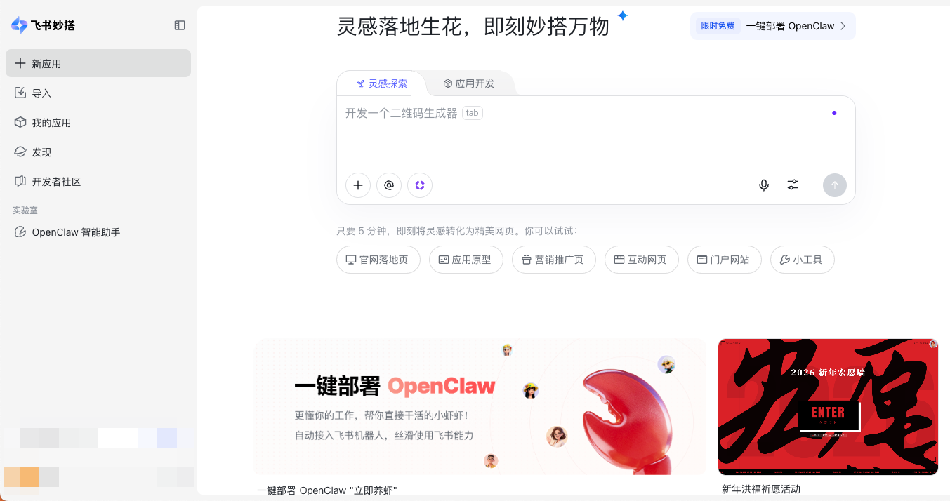 适合场景:飞书重度用户、需要快速上线的个人开发者、追求开箱即用体验的用户