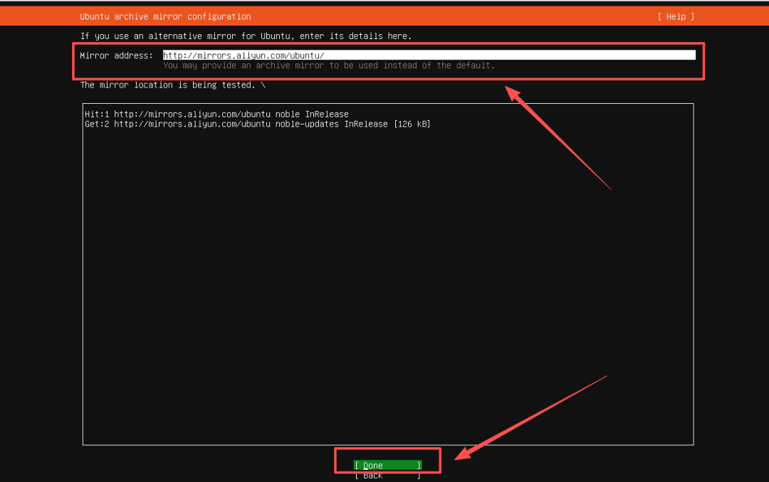接下来将「Mirror address」改成阿里源,然后选择「Done」: