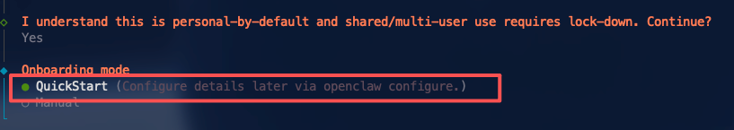 模型提供商选择:暂时跳过(Skip for now),后续单独配置