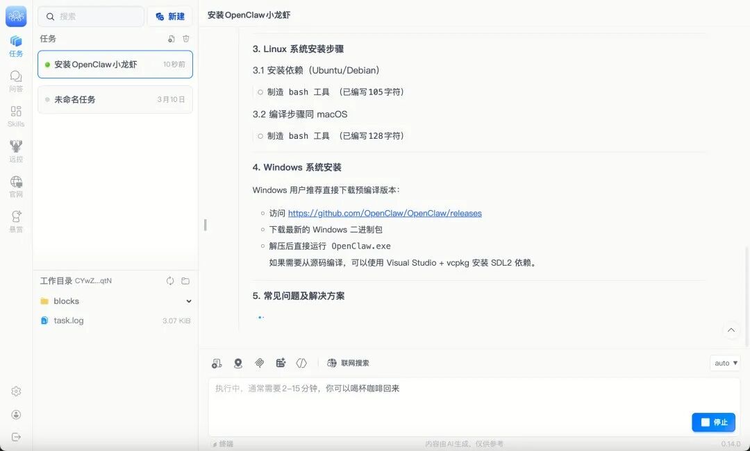 使用体验优化:手机远程指令功能进一步扩展了可用场景——你无需守在电脑前,可以在任何地点通过即时通讯工具下发任务。这降低了使用门槛,提高了工作效率。