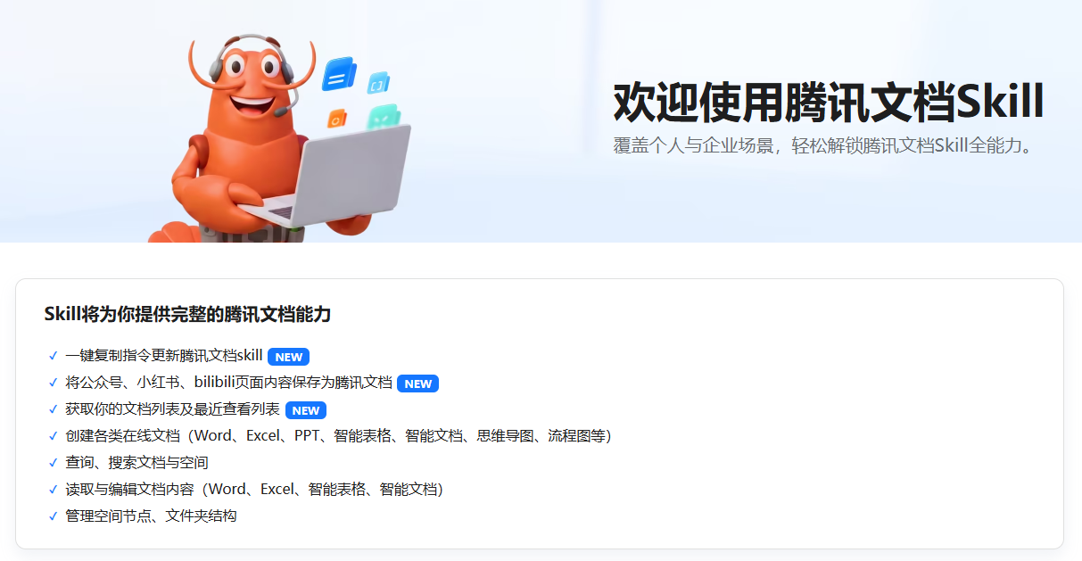 最近腾讯文档官方推出的Skills接入方案就是一个典型案例——它让AI助手不再局限于文本对话,而是能够直接与云端文档系统交互。