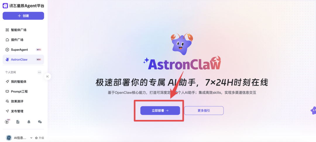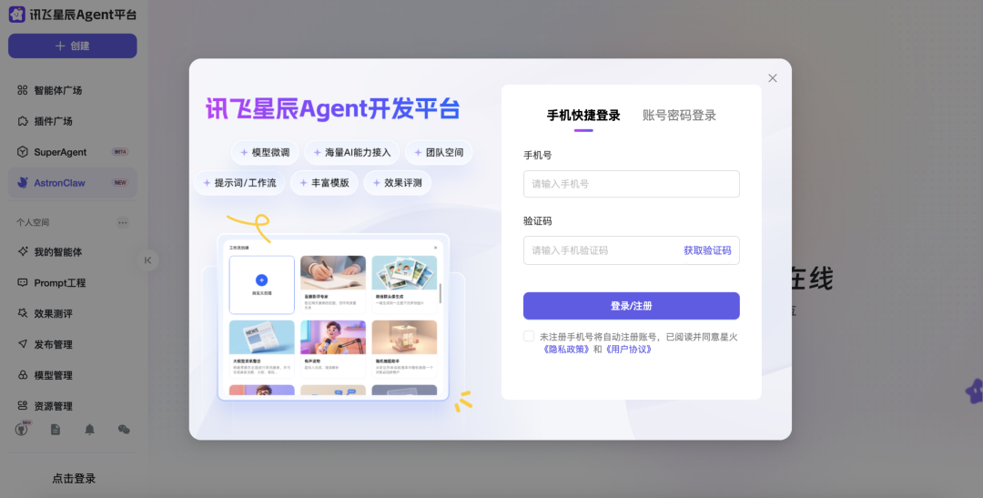 访问讯飞星辰Agent官网:https://agent.xfyun.cn/astron-claw