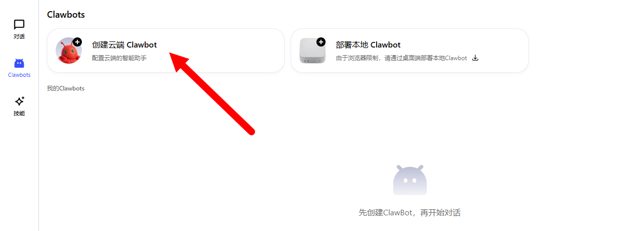 点击:创建云端Clawbots