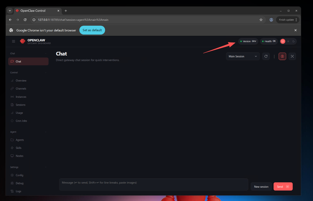 Openclaw的网关Webchat也可以直接在云电脑的桌面打开(版本这里应该是定制的DEV版)