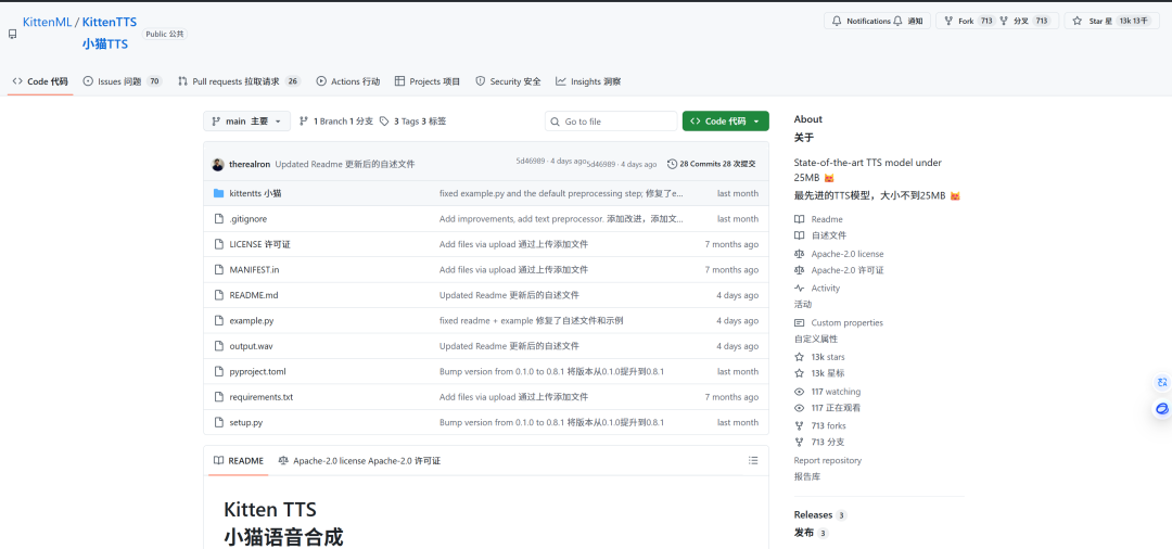 今天要介绍的KittenTTS,正是在这样的背景下诞生的一个有趣的开源项目。