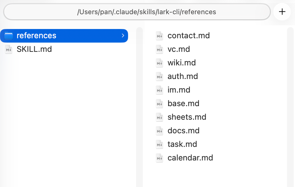 通过npx skills add larksuite/cli -y命令,可以一键安装19个结构化Skills文件,覆盖日历、消息、文档、表格、邮件、任务等业务域。