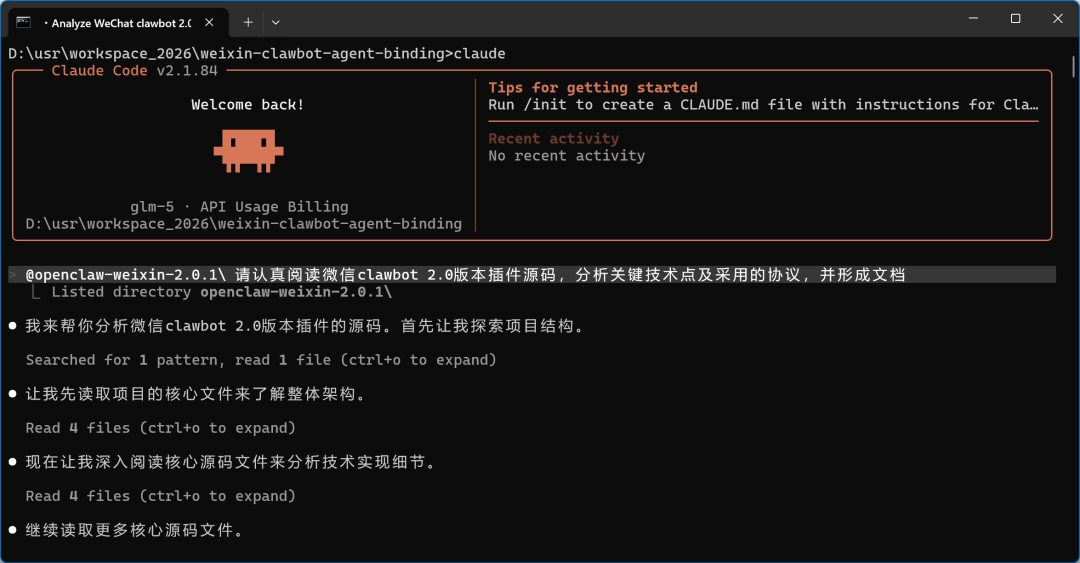 ~/.openclaw/extensions/openclaw-weixin目录) - 使用Claude Code改造后的三个源码文件覆盖对应位置