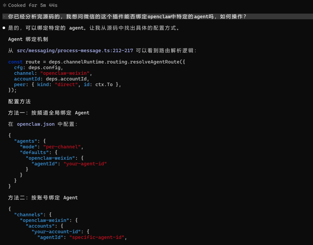 Claude Code的分析表明,该插件原生支持agent绑定机制,但绑定策略固化在配置层面。