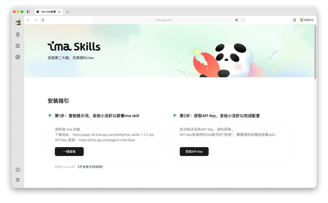 请安装 ima 技能 下载地址:https://app-dl.ima.qq.com/skills/ima-skills-1.1.2.zip API Key 获取:https://ima.qq.com/agent-interface