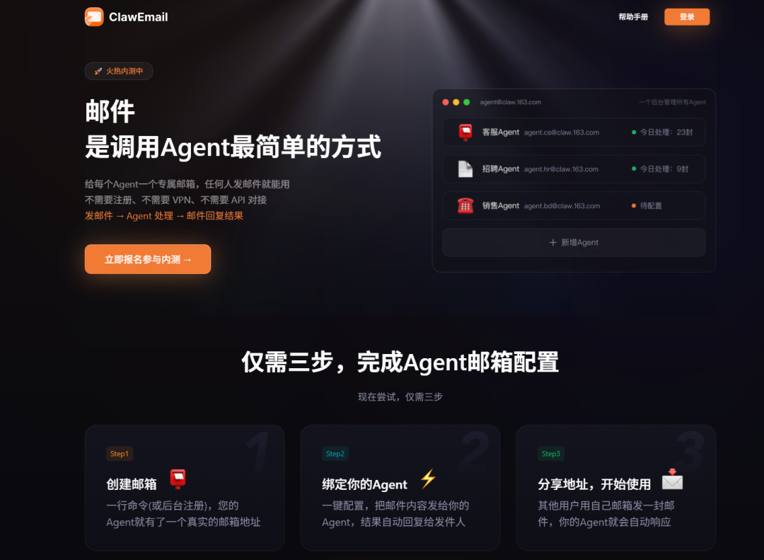 用 AI Agent 操作邮箱并不新鲜,但使用过程中存在隐私泄露风险——家人邮件、银行通知等敏感信息可能被 Agent 接触到。ClawEmail 的解决方案是给 AI Agent 配独立工作邮箱: