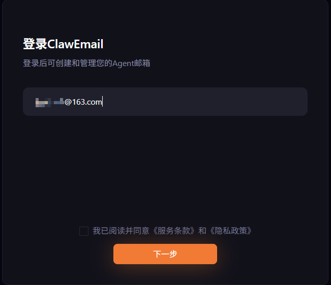 创建成功后会获得一个 xxx.bot1@claw.163.com 的子邮箱。