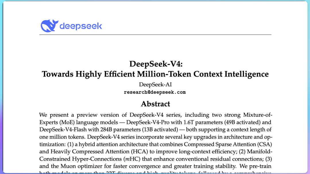 官方技术报告:huggingface.co/deepseek-ai/DeepSeek-V4-Pro