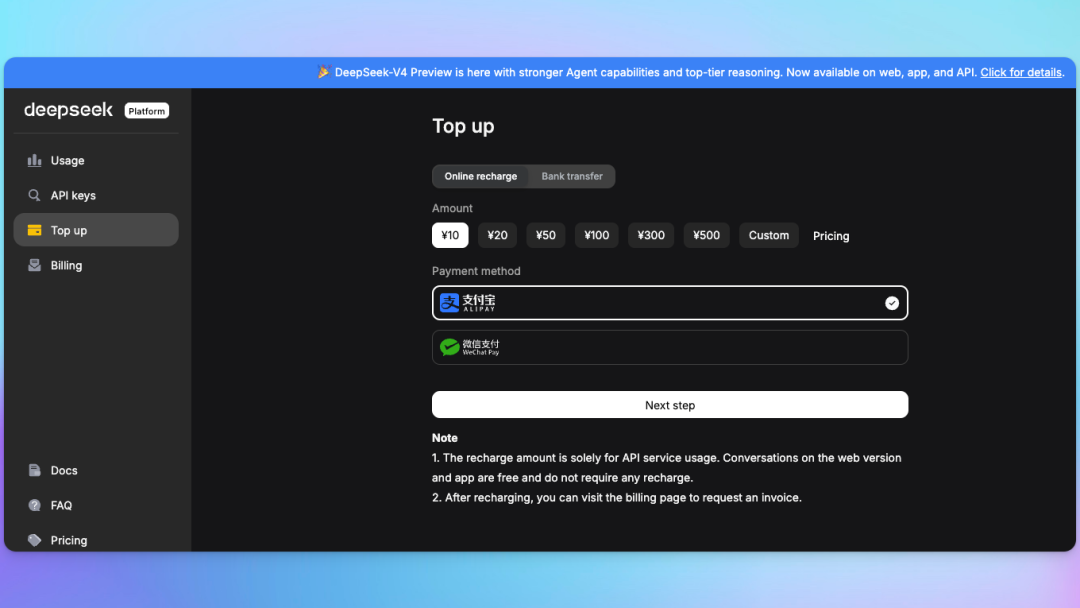 充值地址:platform.deepseek.com/top_up