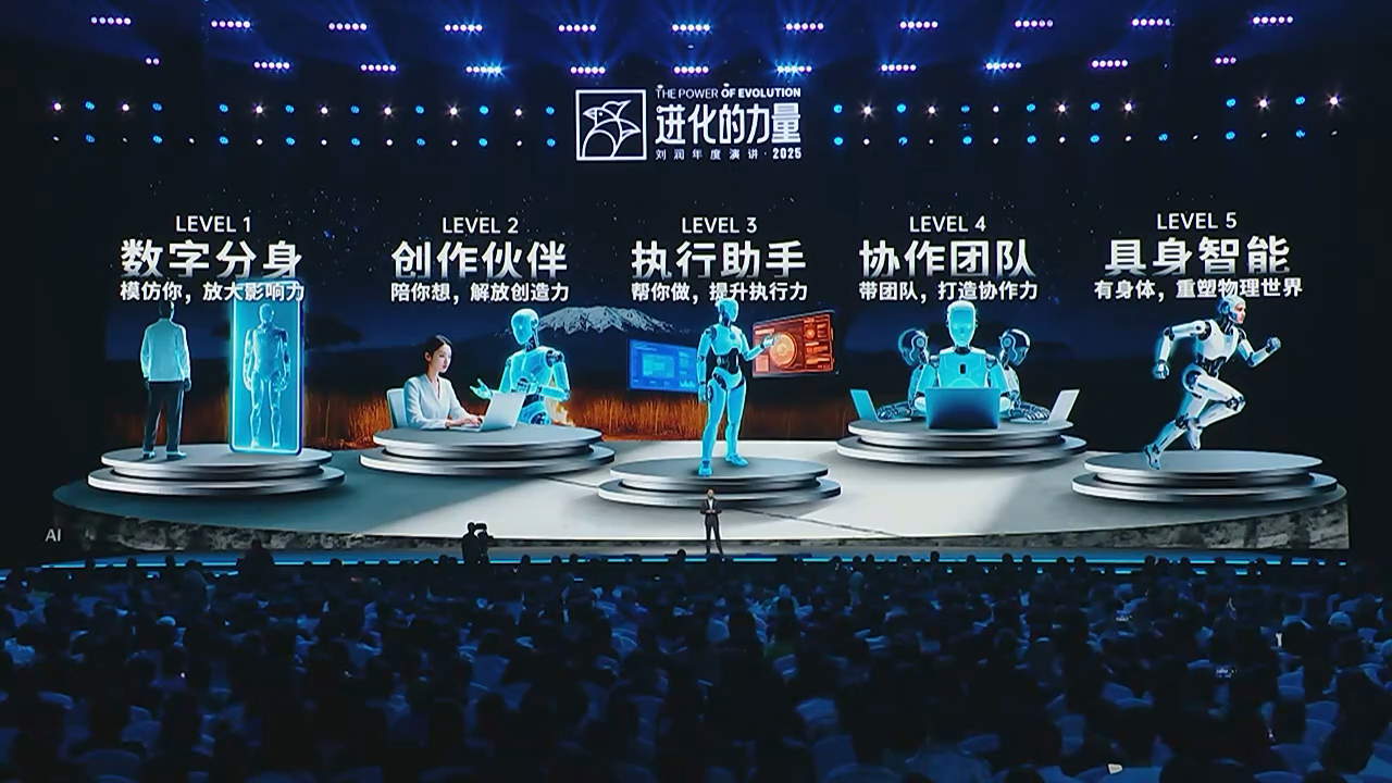 L1 数字分身 → L2 创作伙伴 → L3 执行助手 → L4 协作团队 → L5 具身智能