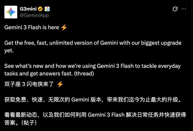 致每一位用户:Gemini 3 Flash 全球上线