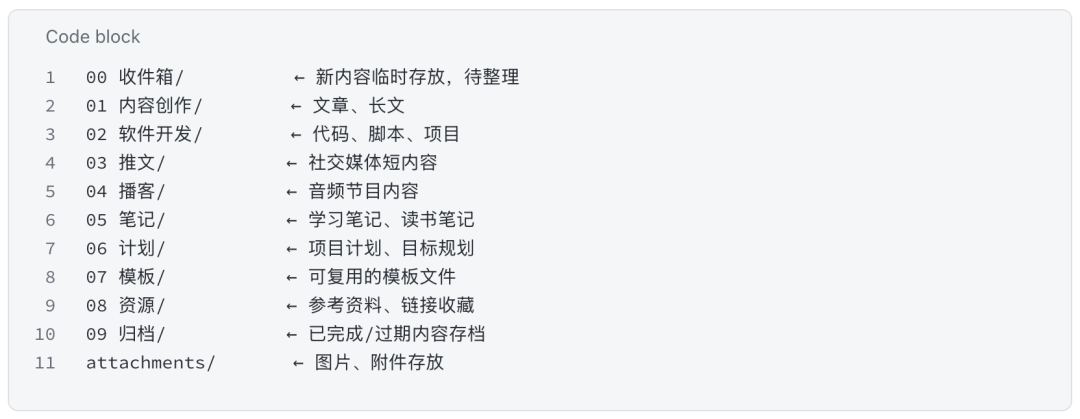 我采用的目录结构结合了杜威十进制分类法和PARA方法论(Project、Area、Resource、Archive),根据工作内容定制。