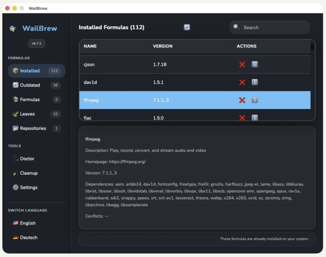 WailBrew 是一个为 Homebrew 提供图形用户界面的桌面应用程序。