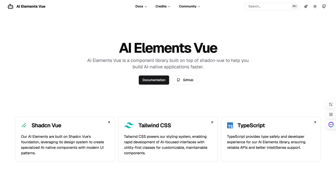 AI Elements Vue是一个基于shadcn-vue构建的Vue 3组件库,专注于AI交互场景下的UI组件封装。
